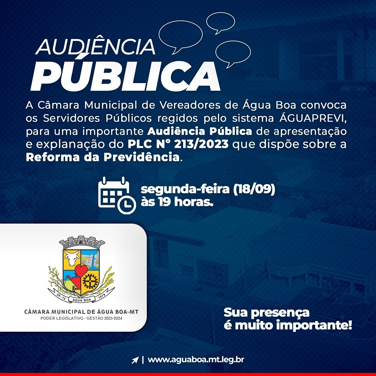 ÁGUA BOA - A Câmara de Vereadores promoverá audiência pública na segunda-feira, dia 18 de setembro.