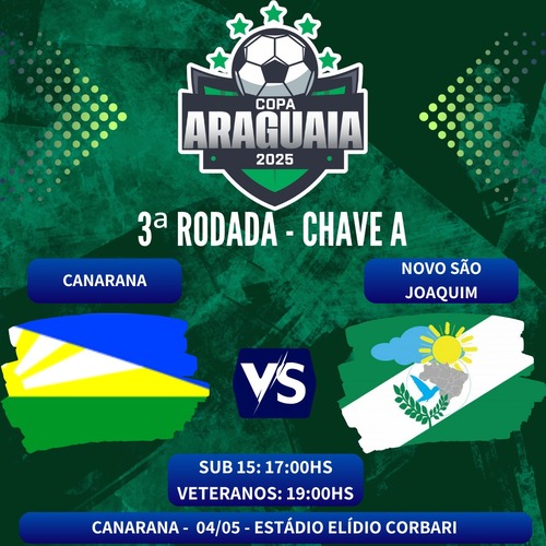 Sábado, 04 de maio, a emoção da Copa Araguaia Sub-15 e Veteranos continua em Canarana com mais uma rodada imperdível!
