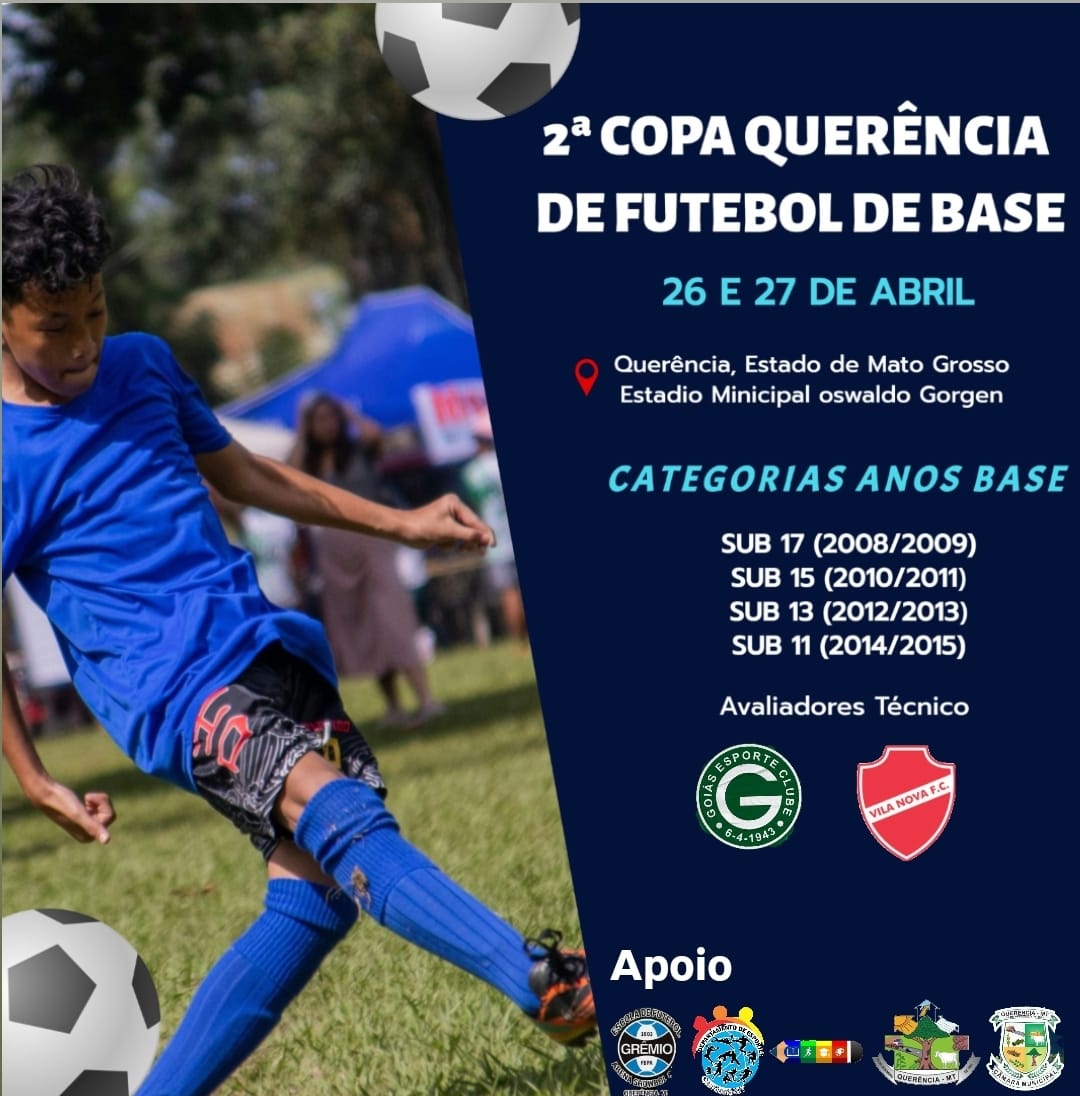 QUERÊNCIA – A cidade será palco, neste final de semana (26 e 27 de abril), da segunda edição da Copa Querência de Categorias de Base, um dos eventos esportivos mais aguardados para o futebol infantojuvenil da região. A competição reunirá talentos das categorias Sub-11, Sub-13, Sub-15 e Sub-17, em jogos eletrizantes e com olheiros de clubes profissionais atentos ao desempenho da garotada.