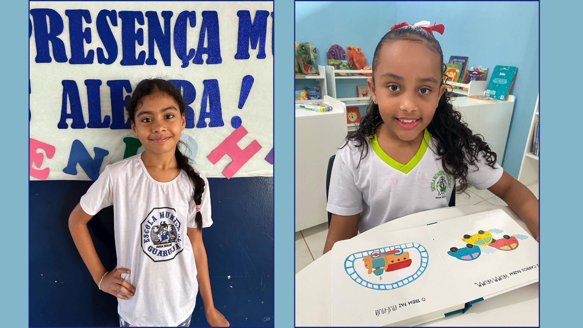 Andrieli Cardos, do 3ª ano da Escola Municipal Cristalino, e Dalila Abreu, do 5º ano da Escola Municipal Guarujá, brilharam em sua trajetória e agora representarão nossa cidade na disputa nacional, que será realizada no Rio de Janeiro.
