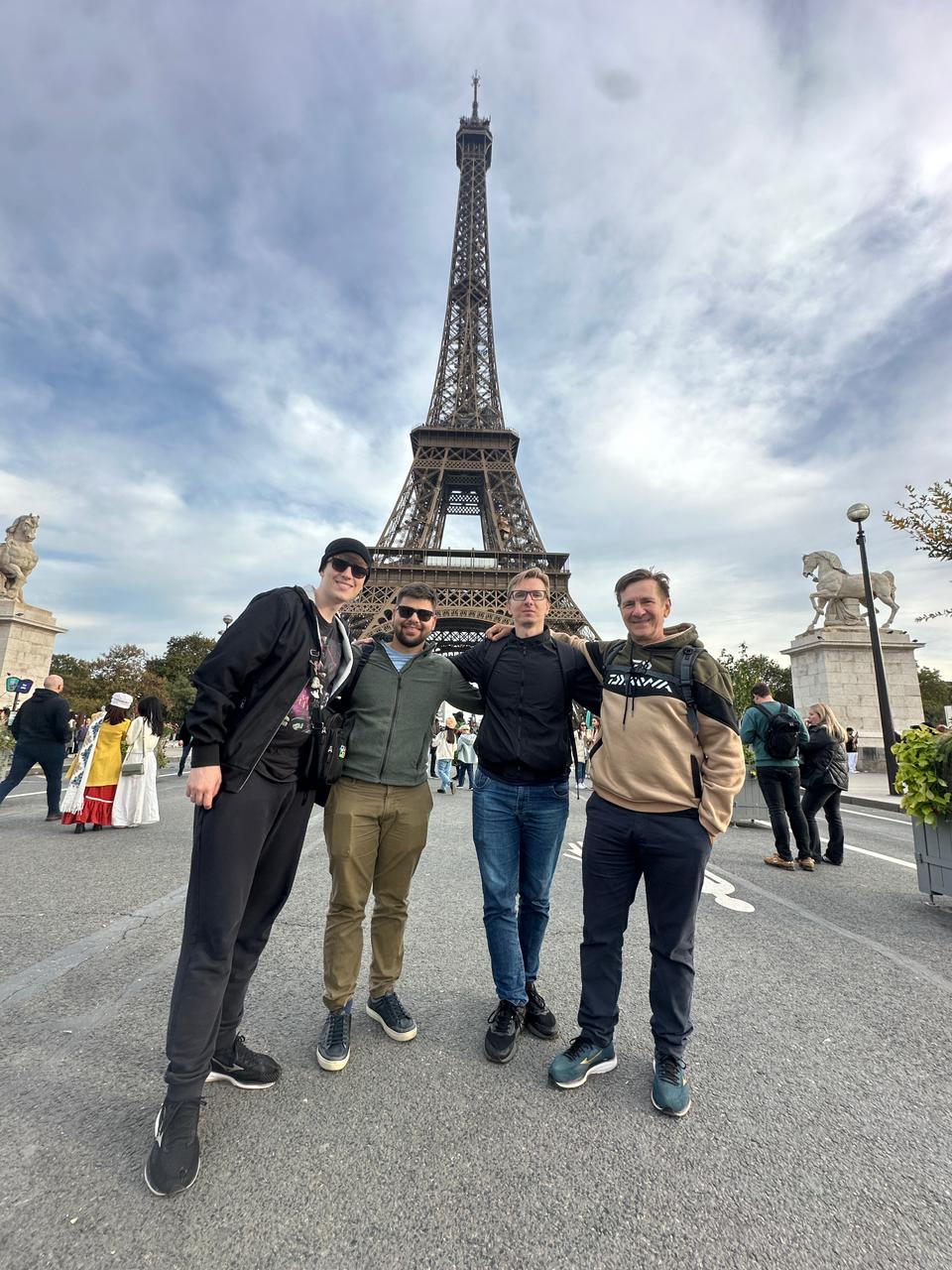 A Torre Eiffel impressiona pela sua arquitetura e pela quantidade de pessoas que a visitam. A segurança é reforçada com detectores de metal em vários pontos, o que nos fez optar por explorar as redondezas, já que o tempo era curto. Andamos um pouco mais e encontramos músicos independentes tocando pela cidade, o que deu um toque especial ao passeio. Um deles tocava saxofone, enquanto outro se destacava por falar uma impressionante quantidade de línguas, respondendo a todos no idioma que utilizavam.