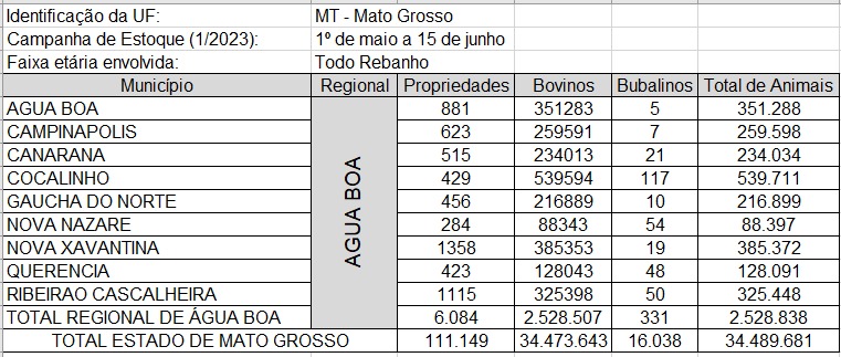 ÁGUA BOA/QUERÊNCIA/RIB. CASCALHEIRA – A Gerência Regional do Indea informou a quantidade de gado registrado nas cidades do Médio Araguaia.