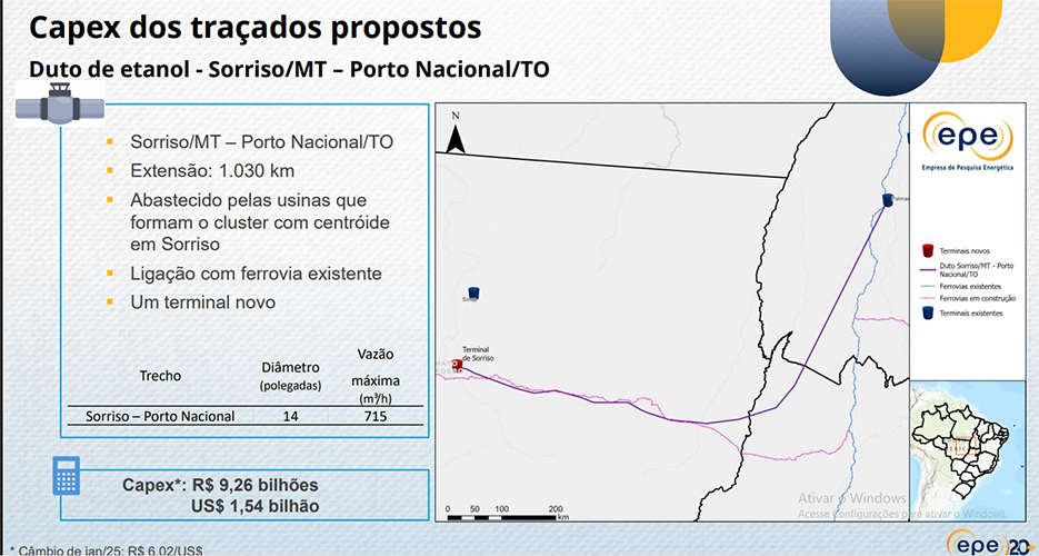 Aproveitando a mesma estrutura logística, o projeto escoaria o produto de Sorriso via Água Boa até Porto Nacional, Tocantins. Outro oleoduto ligaria Sorriso com Rondonópolis em Mato Grosso.