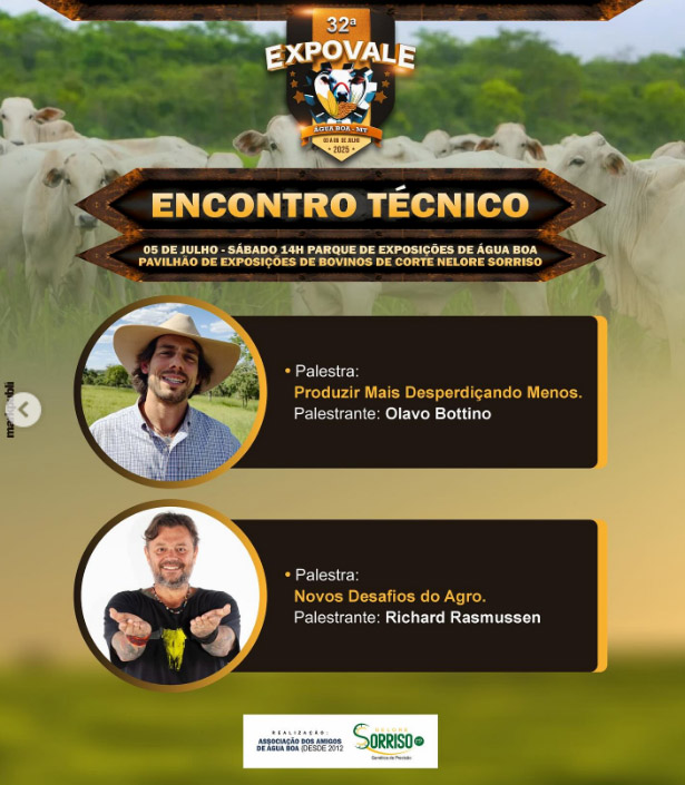 Encontro Técnico na 32ª Expovale - veja a programaçãoÁGUA BOA – Encontro Técnico durante a 32ª Expovale. Serão três dias de muito conhecimento, troca de experiências e novidades do agronegócio.
