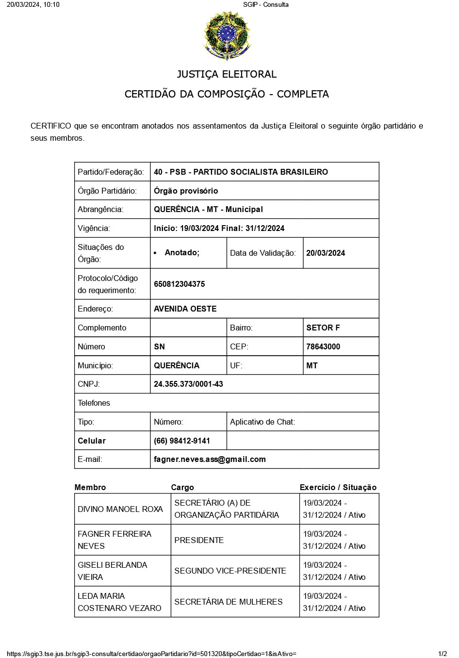 QUERÊNCIA – O PSB - Partido Socialista Brasileiro de Querência tem nova comissão provisória.