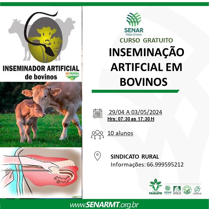Trata-se do curso de inseminação artificial em bovinos, ofertado pelo Senar e pelo Sindicato Rural.