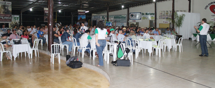 Palestraram na noite de ontem o empresário e escritor Luciano Pires, abordando o tema liderança no Circuito Aprosoja, o diretor executivo da Aprosoja; Marcelo Duarte que falou sobre a importância da soja para Mato Grosso e destacou que este ano é de prudência, uma vez que tudo indica que teremos uma safra recorde esse ano e consequentemente os preços estão pressionados; e o presidente da Aprosoja, Ricardo Tomczyk além de falar da produção de soja em Mato Grosso também abordou as ações realizadas na região do Araguaia e do surgimento de novas tecnologias no mercado da soja e do milho. Ele destacou que o Circuito Aprosoja é fundamental para que os produtores possam discutir as dificuldades enfrentadas no cotidiano e programar a próxima safra. Após as palestras, os participantes desfrutaram de um saboroso costelão.