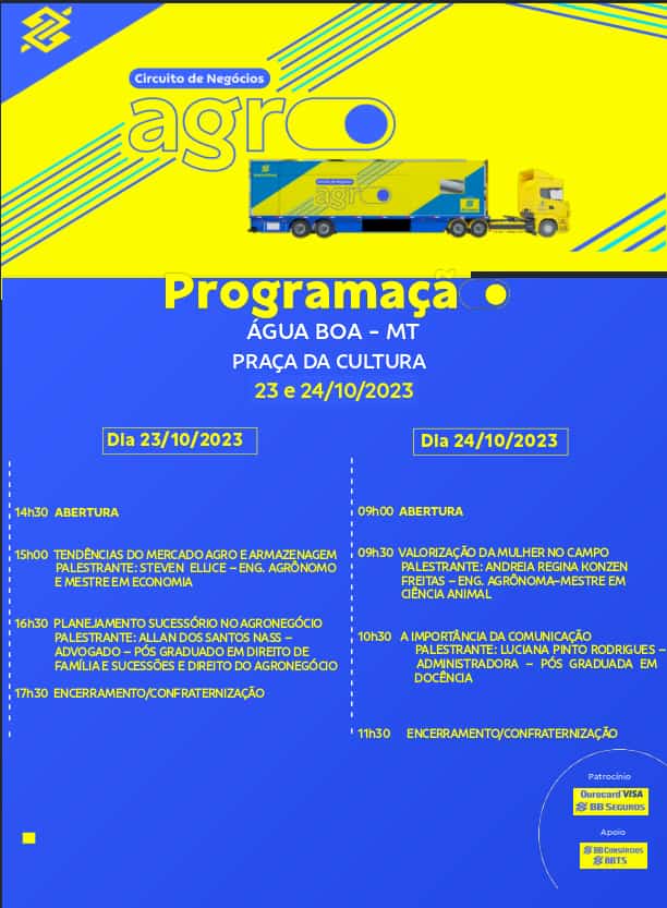 ÁGUA BOA - O Banco do Brasil promoverá evento destinado ao agronegócio.