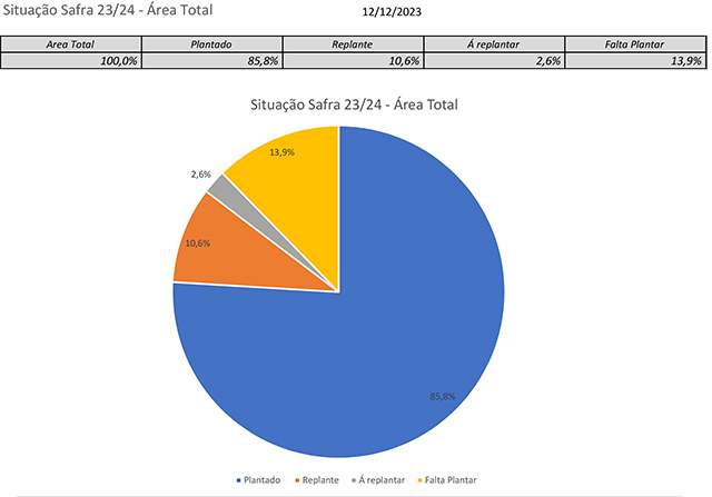 Cerca de 26% das áreas necessitam replantio, segundo o levantamento da última terça-feira. Se não chover nos próximos dias, os prejuízos aumentarão consideravelmente.