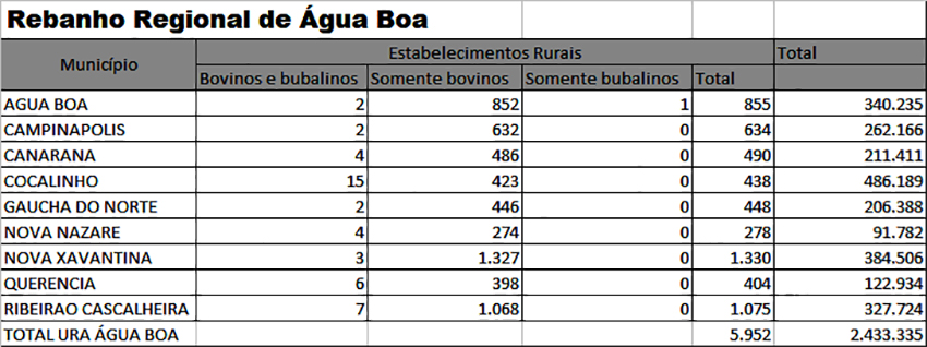 ÁGUA BOA – O Indea informa que foram registrados pelos pecuaristas, 340.235 bovinos e bubalinos no município de Água Boa.