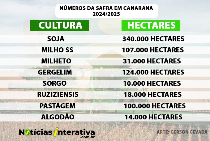 Outras cultivares são sorgo, milheto e algodão. As pastagens ocupam ainda 100m mil hectares em Canarana.