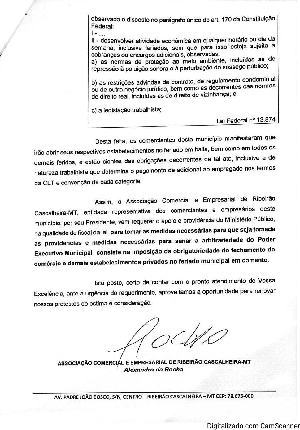 Na ocasião, eles discutiram sobre feriado municipal e a abertura do comércio. Acontece que nesta sexta-feira, 11 de agosto, será feriado municipal na cidade.