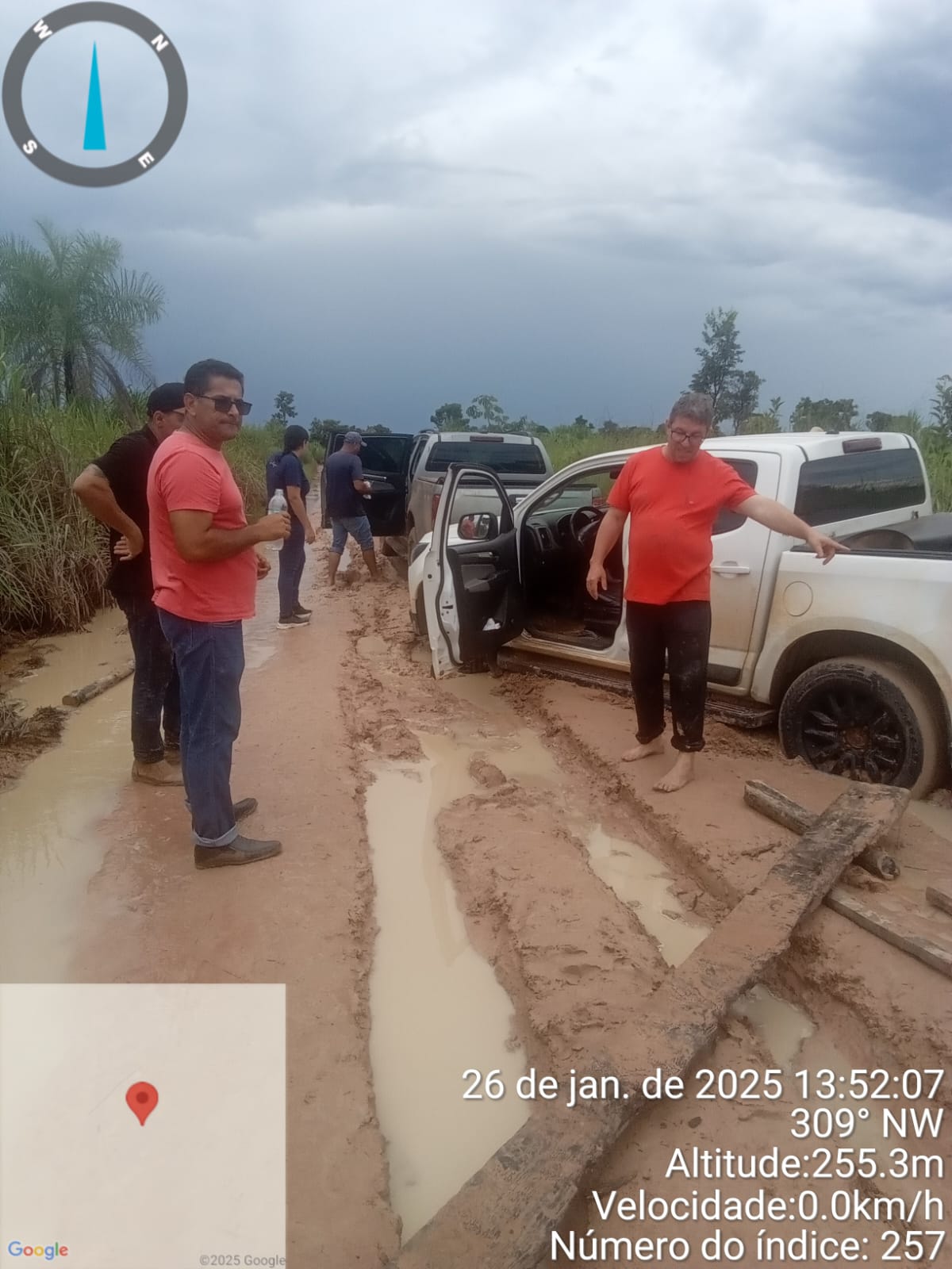 A enxurrada destruiu a estrada de acesso. Os veículos conseguiram passar pelos atoleiros após muito trabalho.