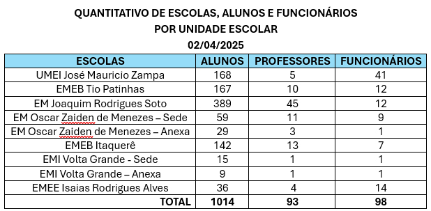 Tendo população acima de 7.100 moradores, mostra que cerca de 14,5% são estudantes em escolas municipais.