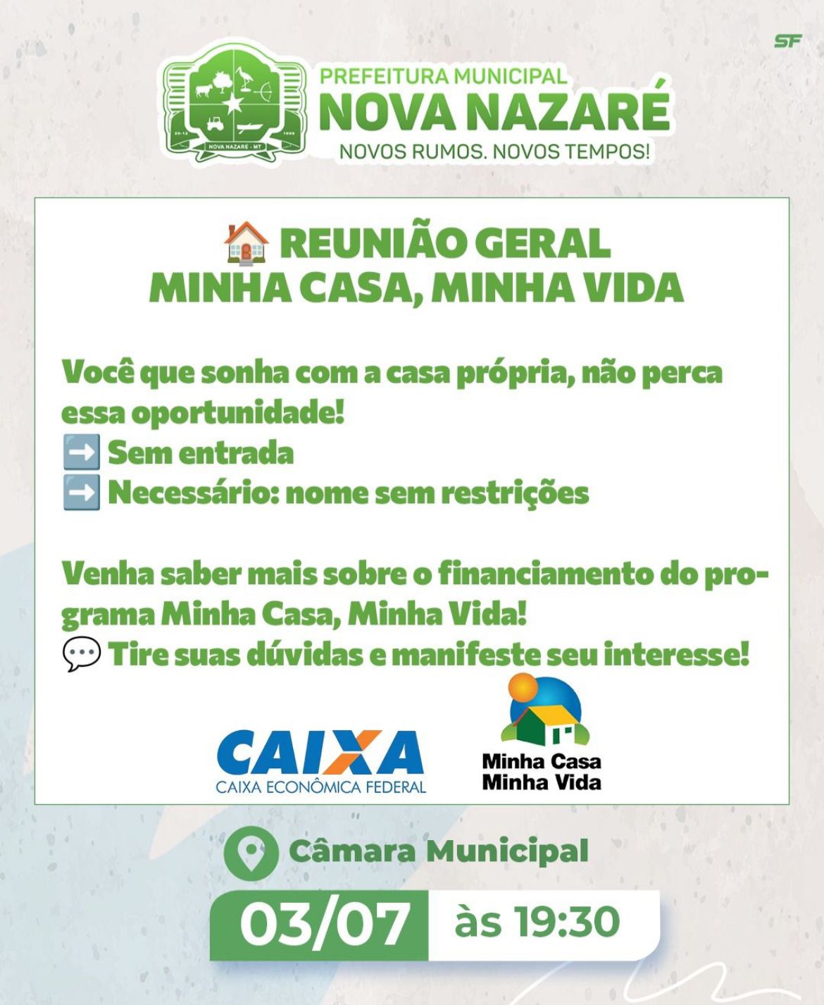 NOVA NAZARÉ - Moradores de Nova Nazaré interessados em adquirir a casa própria através da Caixa Federal terão oportunidade agora.