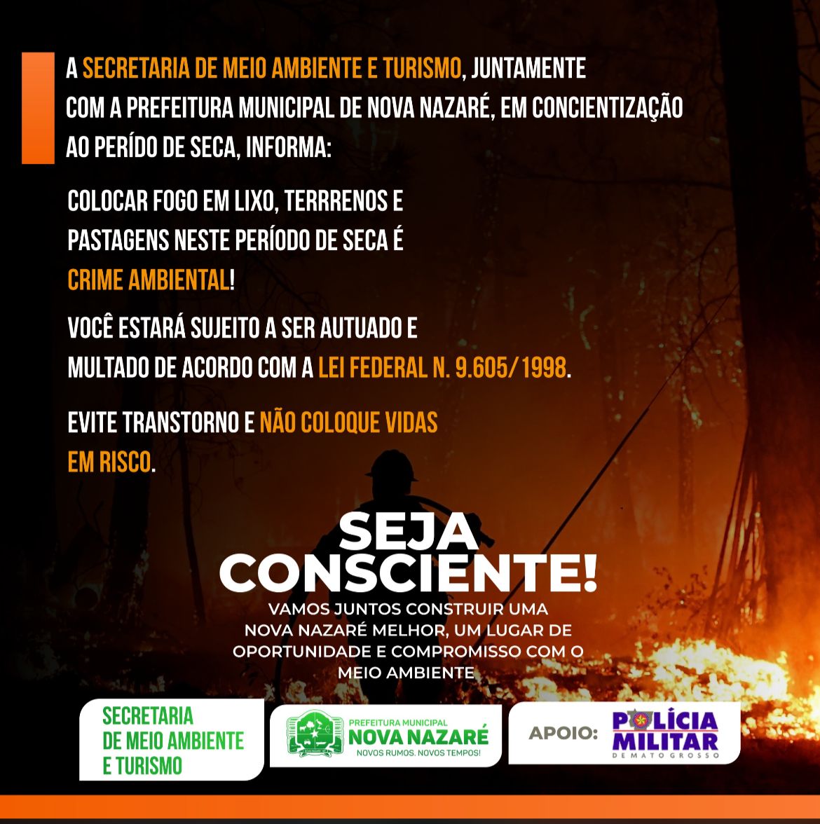 NOVA NAZARÉ - A Secretaria de Meio Ambiente do município alerta que durante o período de estiagem, algumas medidas de segurança devem ser adotadas pela população.
