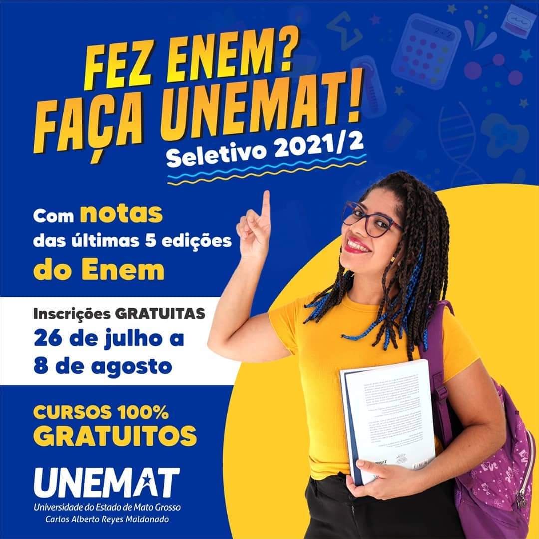 A Universidade do Estado de Mato Grosso (Unemat) divulgou hoje (21) o edital do Processo Seletivo 2021/2, para ingresso no segundo semestre deste ano. Esta edição oferta 2.570 vagas em 62 cursos, distribuídos em 12 municípios do Estado, incluindo Querência.