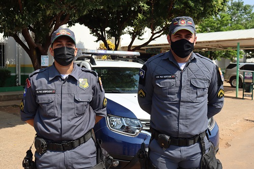 Os policiais militares e instrutores, Cabo PM Leopoldo e Cabo PM Bertol, viajam de Água Boa à Querência para aplicar as aulas aos alunos da rede municipal e particular de ensino.