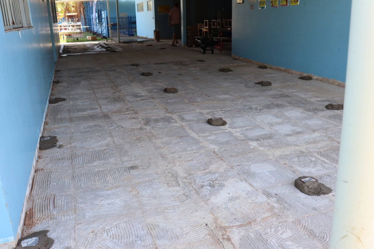 As antigas cerâmicas no interior da escola já foram retiradas e serão substituídas por novas.