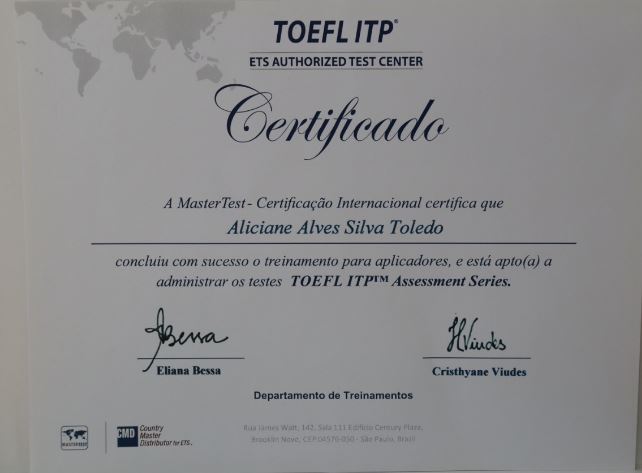 O teste TOEFL ( Test of English as a Foreign Language ) é aceito por instituições em todo o mundo, o teste mede as habilidades acadêmicas em Inglês da maneira como elas são realmente usadas em sala de aula, para que as Universidades de outros países saibam se o aluno está pronto para ter sucesso nos estudos. O teste tem 4 seções — Reading, Listening, Speaking e Writing.