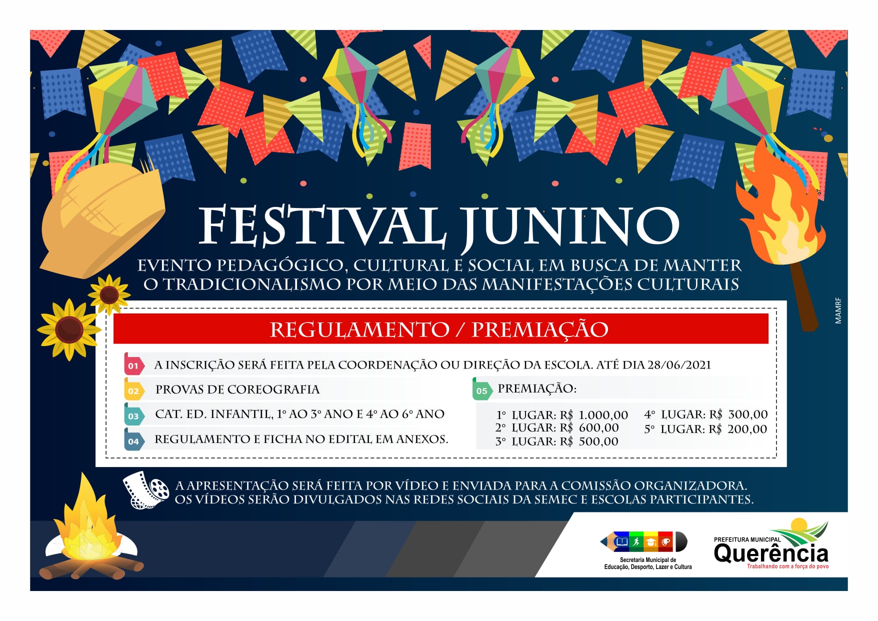 O projeto “Festival Junino” vem para integrar escolas e comunidade, promover uma mobilização e fortalecimento dessa atividade cultural e tradicional adaptada ao contexto atual.