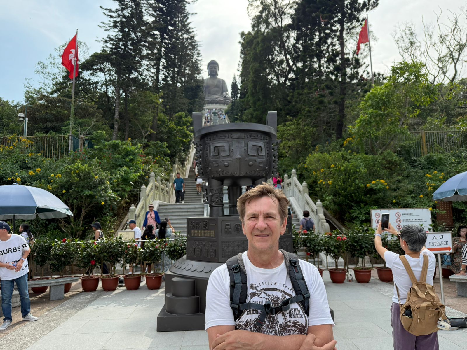 Ontem tivemos uma experiência muito especial. Visitamos o Monastério de Po Lin, onde fica o famoso Buda gigante, localizado em uma das ilhas próximas. A beleza do lugar e sua simbologia deixaram uma forte impressão, tornando esse um dos momentos mais marcantes da viagem.