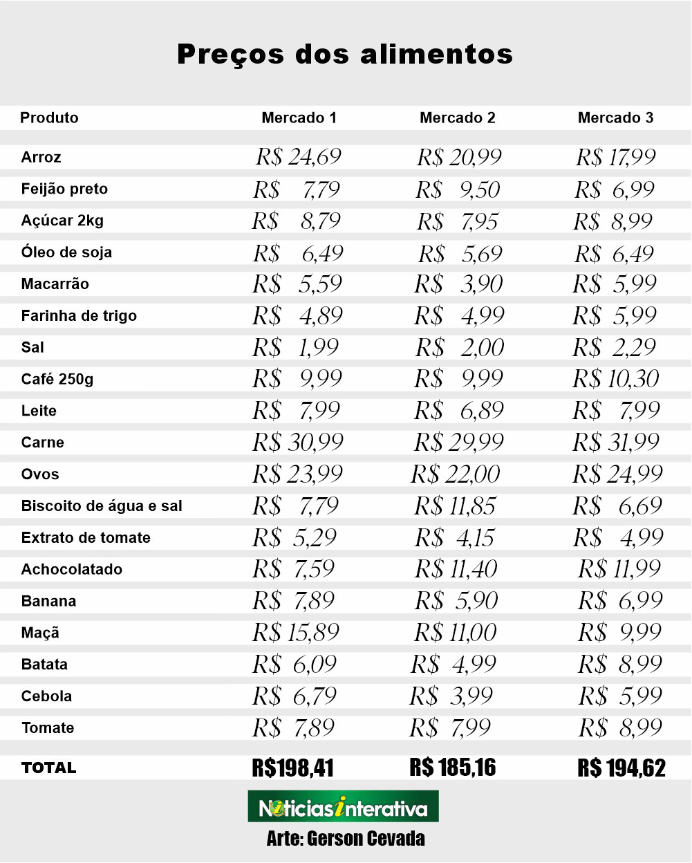 RIB. CASCALHEIRA - O Portal Notícias Interativa realizou um novo levantamento de preços da cesta básica em Ribeirão Cascalheira.