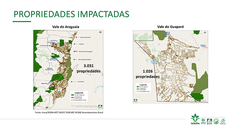 Nos 17 municípios do Araguaia, são 3.031 propriedades afetadas, enquanto que no Vale do Guaporé, são 1.026 propriedades com áreas embargadas.