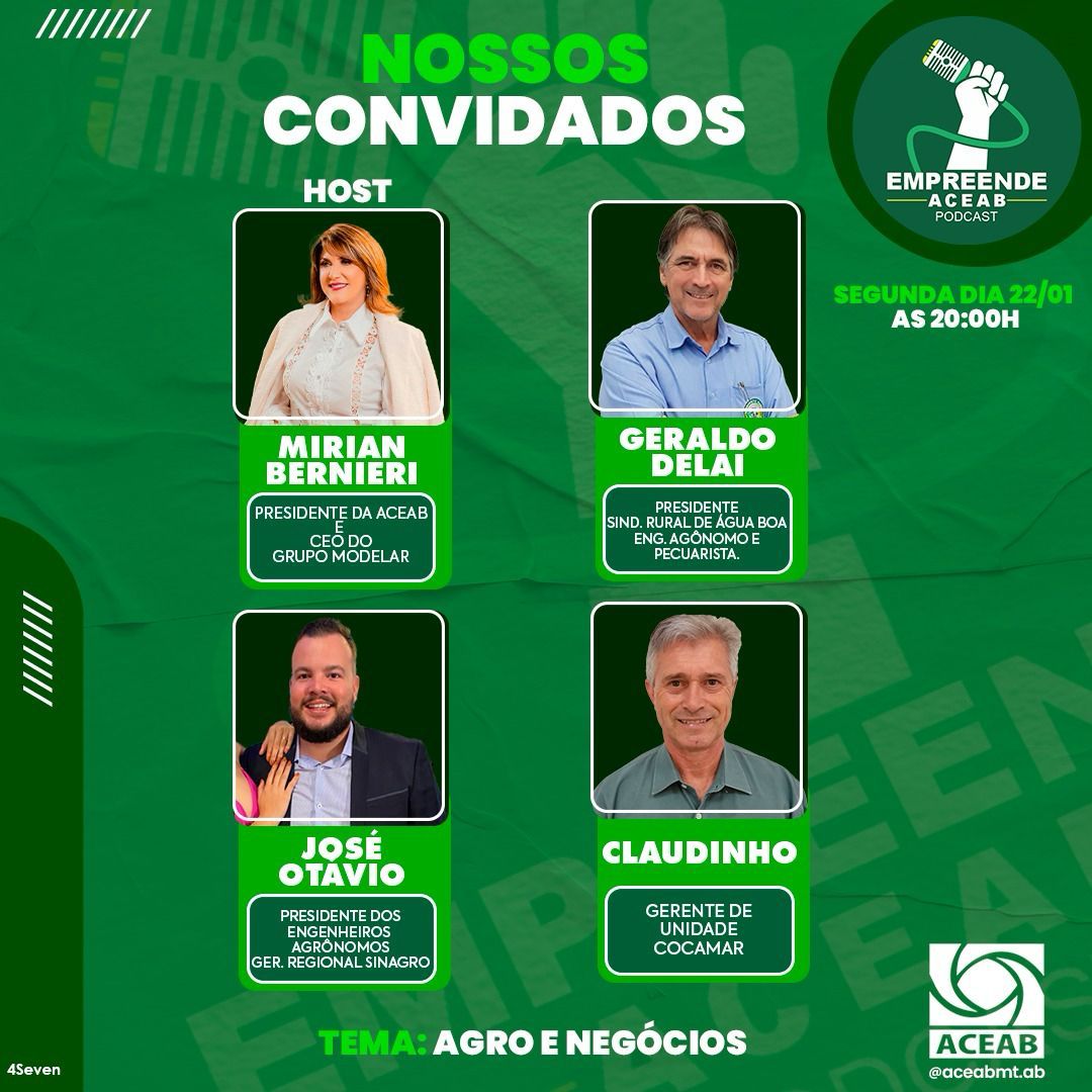 O podcast da ACEAB vai ter como tema o Agro e Negócios às 20h em redes sociais.