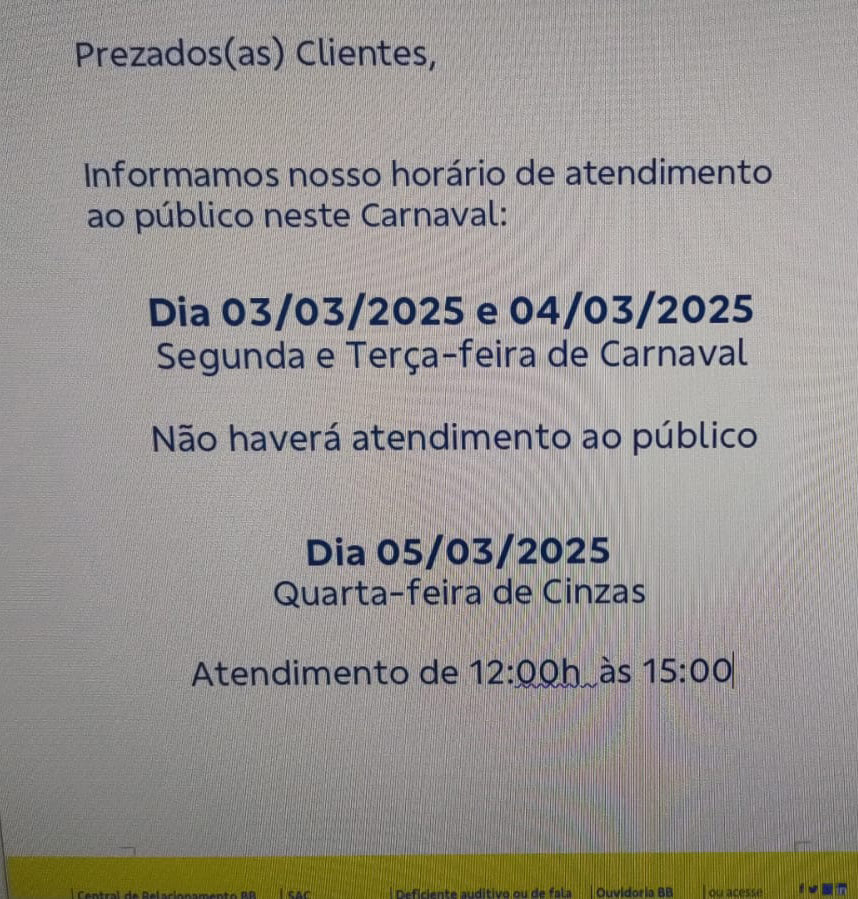 Os bancos retomam o atendimento somente ao meio-dia de hoje, 5 de março, quarta-feira de cinzas.