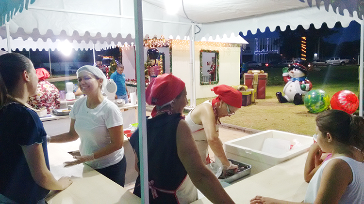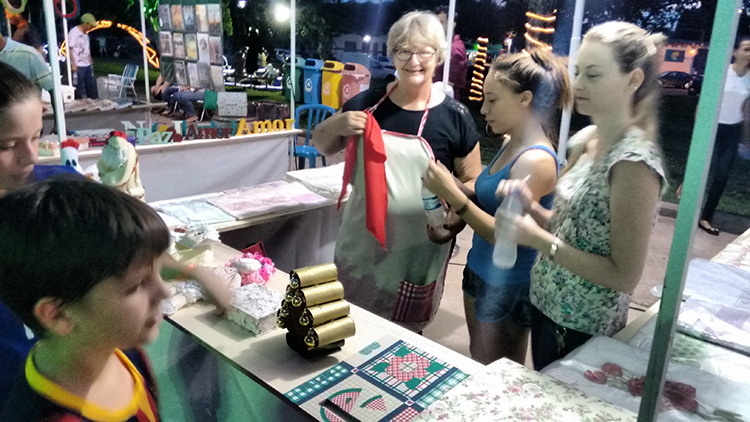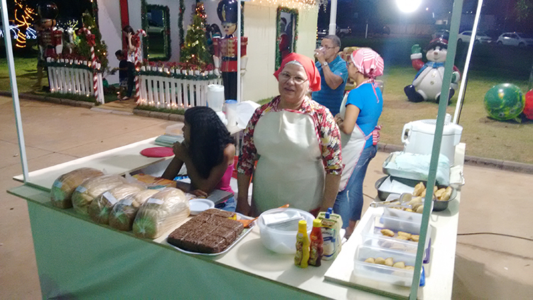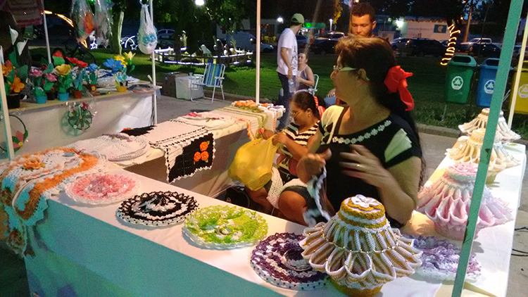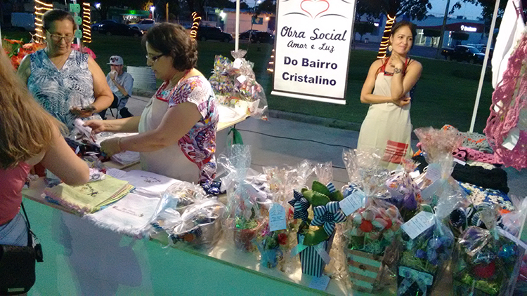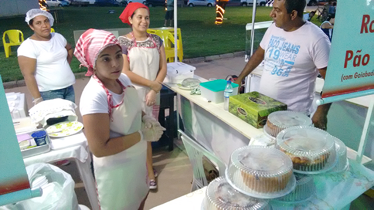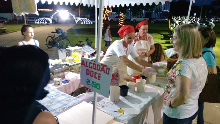 Por volta das 20h30 faltou energia na cidade, mas a feira prosseguiu sem desanimar, com a iluminação dos celulares, enquanto o público continuava visualizando os itens em exposição, comprando e degustando os alimentos preparados na hora.