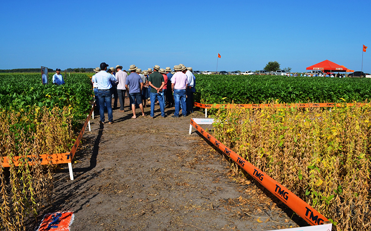 Após o café da manhã, quatro grupos foram formados e diferentes cultivares de soja da TMG foram apresentadas conforme seus pontos fortes, características e demais peculiaridades. Foram pauta no dia de campo as cultivares da TMG, 1180 RR, 2179 IPRO, 2181 IPRO, 2183 IPRO, 133 RR, 2185 IPRO e 132 RR.