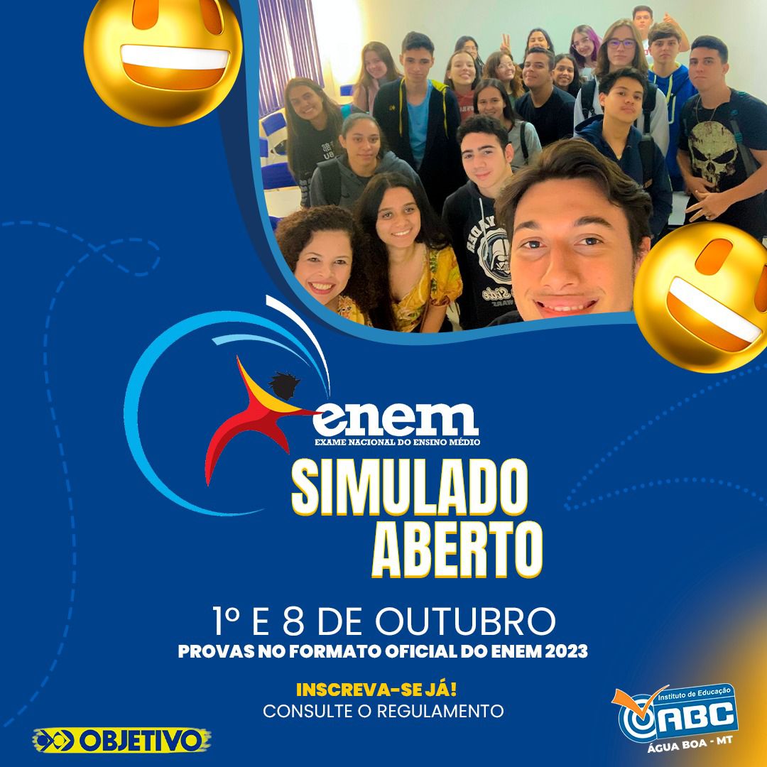 ÁGUA BOA - Vem aí o Simulado Aberto ENEM. Será dias primeiro e 08 de outubro. A iniciativa é da Escola Objetivo IEABC. As provas simuladas seguem o mesmo padrão das provas do ENEM. Inscrições podem ser feitas no site curso.objetivo.br. A prova aplicada será no sistema presencial.