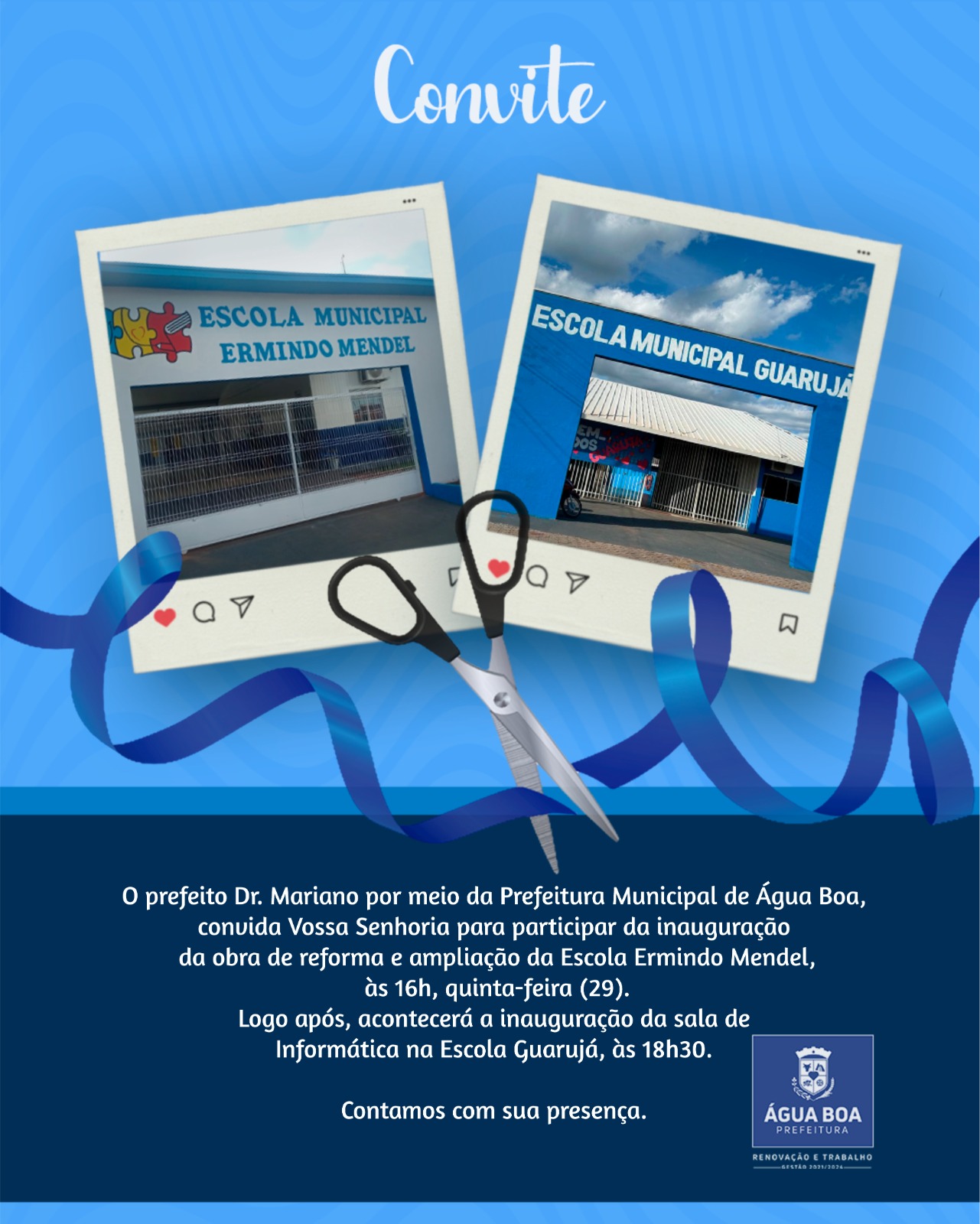 ÁGUA BOA – A prefeitura entregou agora à pouco, a obra de ampliação e modernização da Escola Municipal Ermindo Mendel.