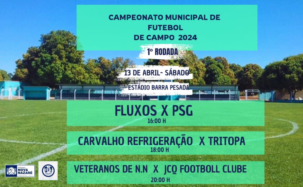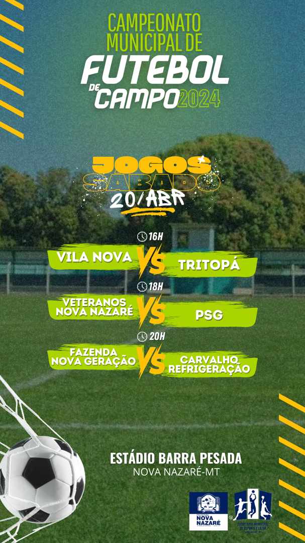 Atualizada dia 15 abr 24 Confira resultados da primeira rodada do Campeonato de Futebol de Campo de Nova Nazaré.
