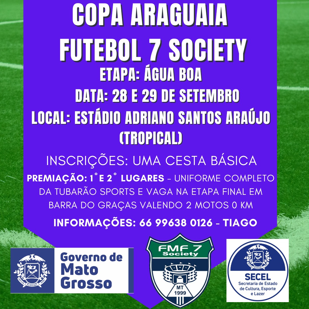VALE DO ARAGUAIA - Vem aí a Copa Araguaia de Futebol 7 Society etapa de Água Boa.