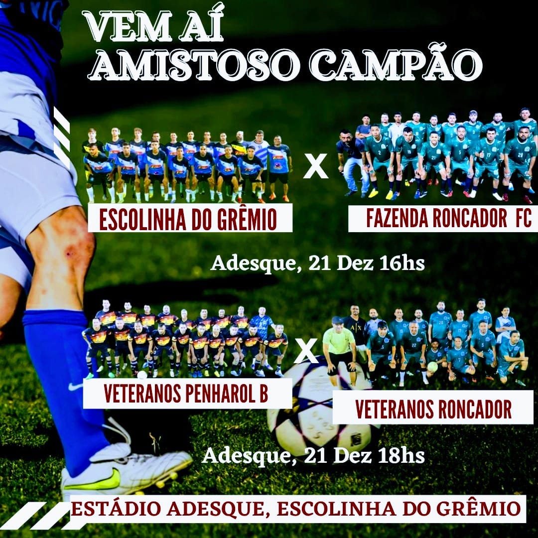 QUERÊNCIA - Neste sábado (21/12), as equipes de futebol da Fazenda Roncador dão o pontapé inicial em suas preparações para os campeonatos municipais de 2025. Para marcar o início dos treinos, dois amistosos serão realizados no campo da ADESQUE, local onde também ocorrem os treinamentos da Escolinha do Grêmio.