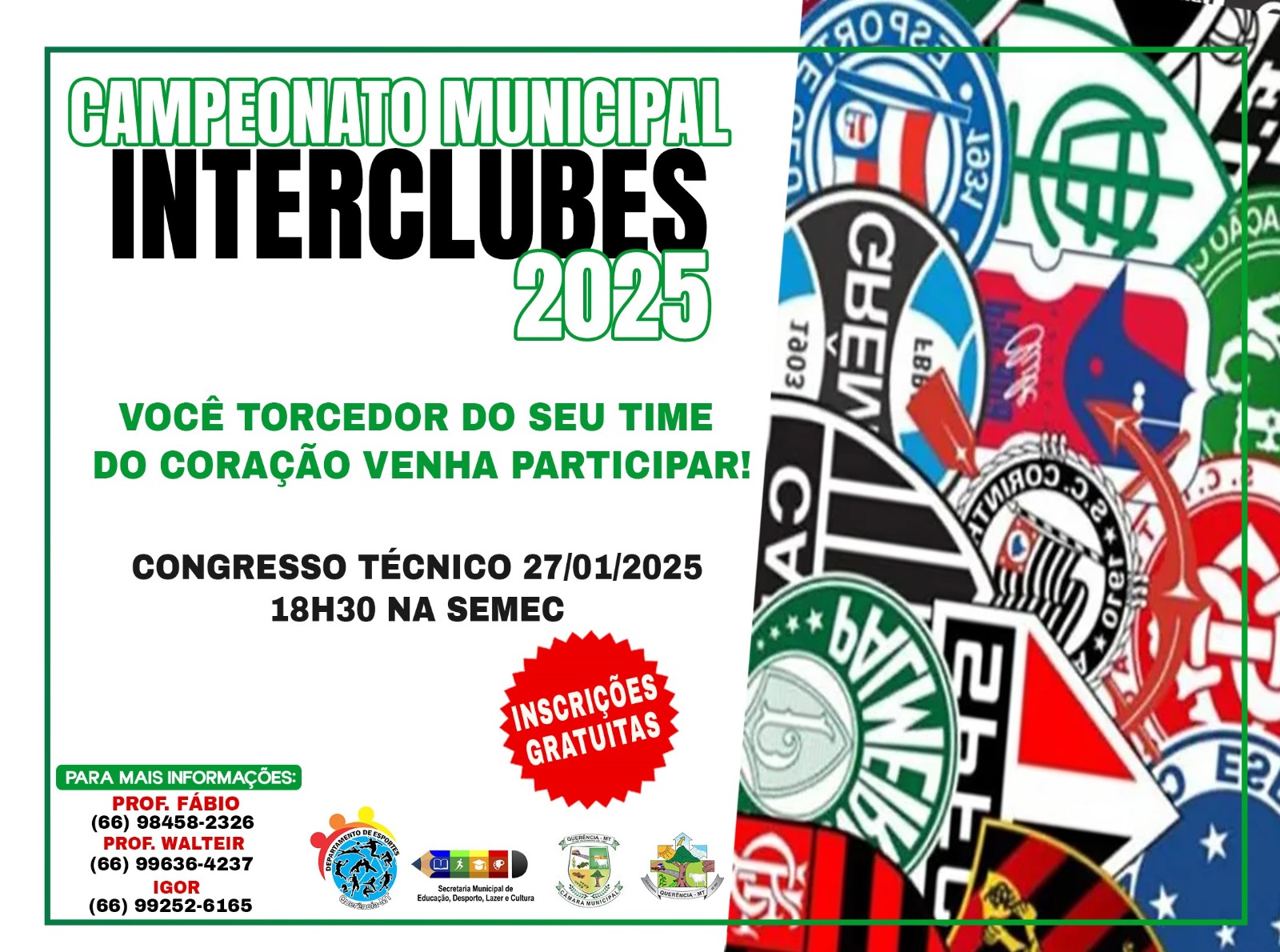 O Congresso Técnico do Interclubes, marcado para 27 de fevereiro, às 18h30, será realizado na SEMEC. O evento discutirá as regras e regulamentos do campeonato, previsto para começar no dia 8 de fevereiro. Walteir Barbosa destaca: “Vamos promover a integração entre torcedores e atletas e preparar o cenário para a primeira atividade esportiva do ano.”