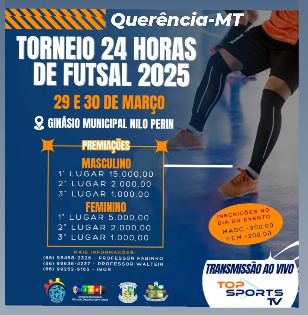 No fim do mês, nos dias 29 e 30, será realizado o tradicional evento de 24 horas de futsal, no Ginásio Nilo Perin.