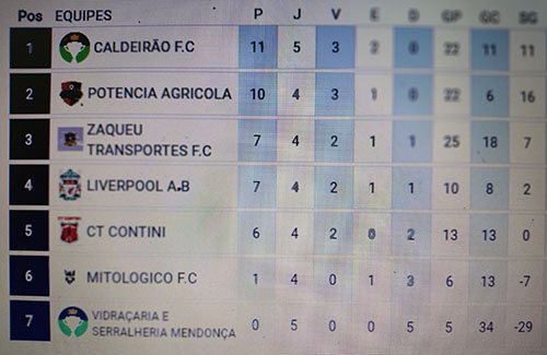 - Na categoria veteranos, o time do Zaqueu Transportes demonstrou superioridade e não deu chances para a equipe da Vidraçaria Mendonça, aplicando uma goleada de 13 a 1.