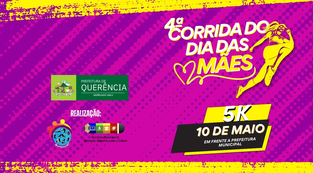 QUERÊNCIA - A cidade de Querência se prepara para mais uma edição da tradicional Corrida do Dia das Mães, que acontece neste sábado, dia 10, com início às 15h. O evento esportivo é aberto à comunidade e contará com diversas categorias, incluindo a corrida principal, disputas por faixa etária, provas para moradores do município, além de baterias exclusivas para mães, crianças (Kids) e pessoas com deficiência (PCD).