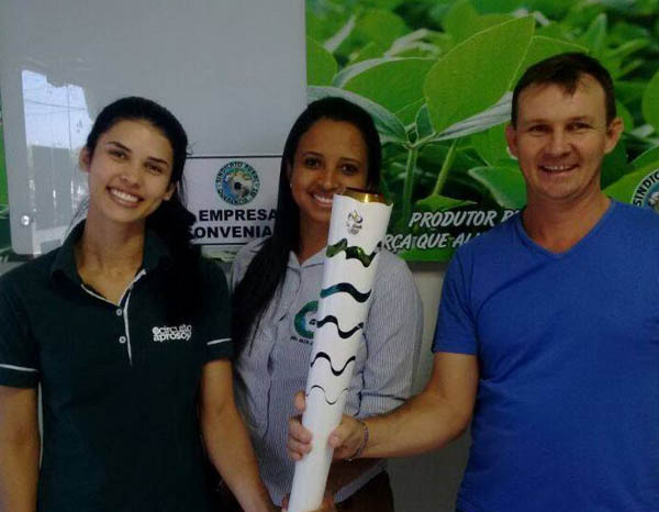 QUERÊNCIA - O vice presidente da Aprosoja Região Leste, Andre Bonman, recebeu a tocha olímpica na sede do Sindicato Rural na tarde desta segunda feira, 08 nde agosto. O Diretor do Grupo Roncador, Caio Penido, trouxe a tocha, que ficará na sede do grupo.