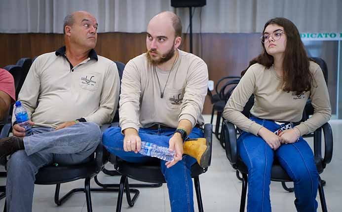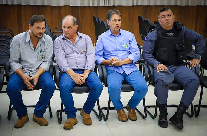 Hoje pela manhã, no Sindicato Rural, estiveram presentes lideranças do agronegócio, o tenente coronel Gyancarlos Cabelho da Polícia Militar, o presidente do Sindicato, Geraldo Delai, o promotor Dr. Luis Alexandre Lentisco, e representantes da Funai.