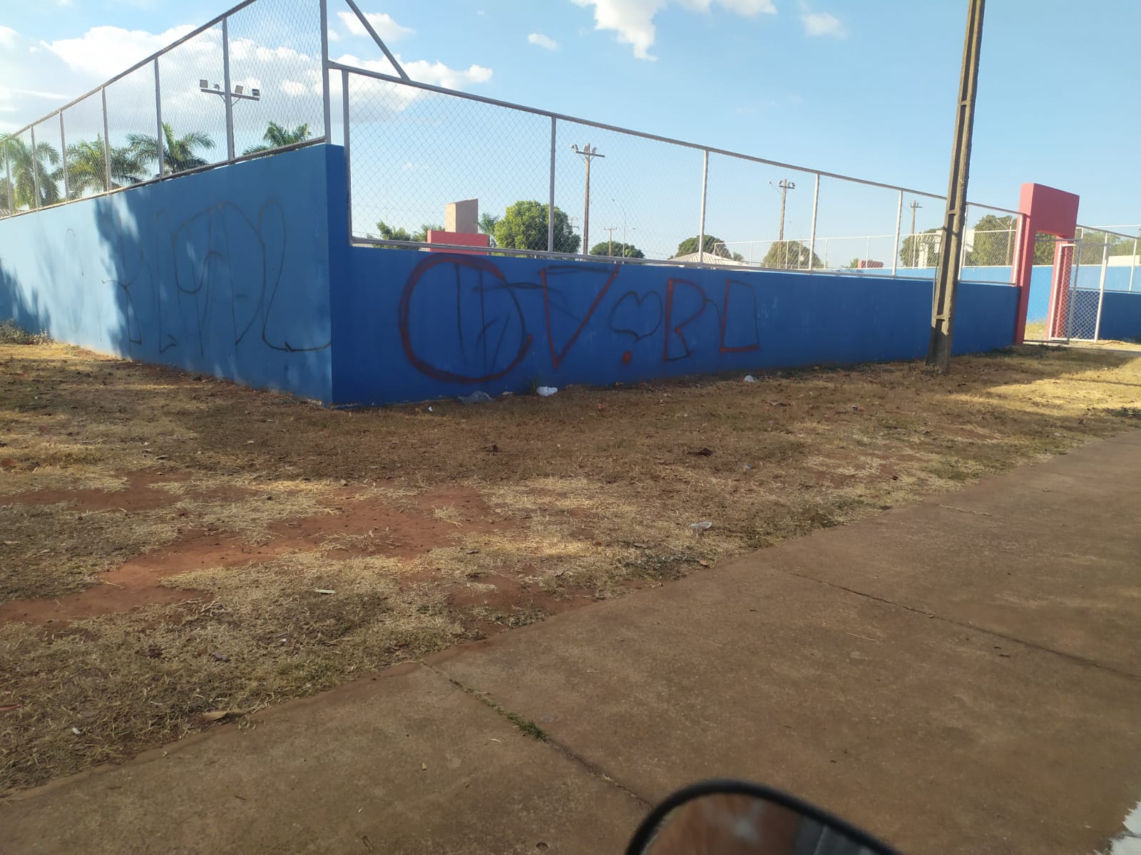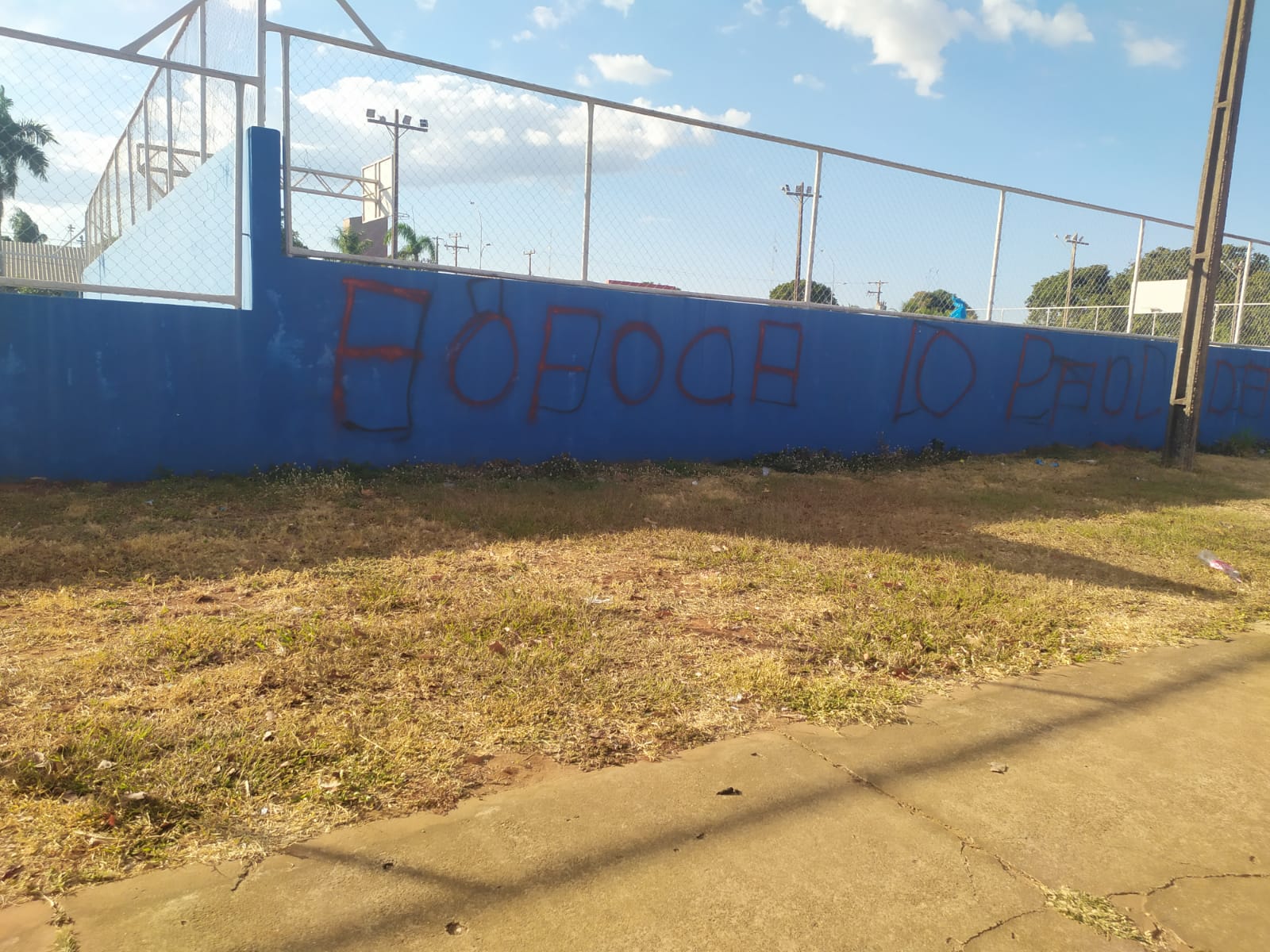 ÁGUA BOA – Desocupados fizeram pixações na Praça do Setor Cristalino.