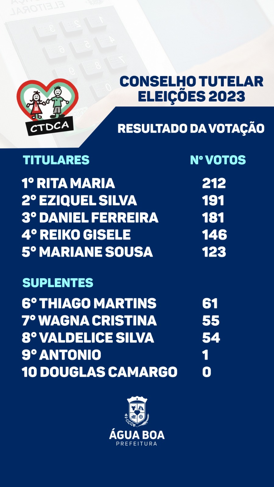 No término do processo eleitoral, os cinco que acumularem a maior quantidade de votos vão compor a nova equipe do Conselho Tutelar de Água Boa.