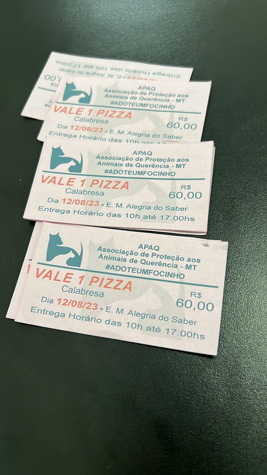 QUERÊNCIA - A APAQ (Associação de Proteção aos Animais de Querência) está realizando uma ação beneficente em prol de animais abandonados. Trata-se da venda de pizzas no sabor de calabresa. Cada pizza custa R$ 60.
