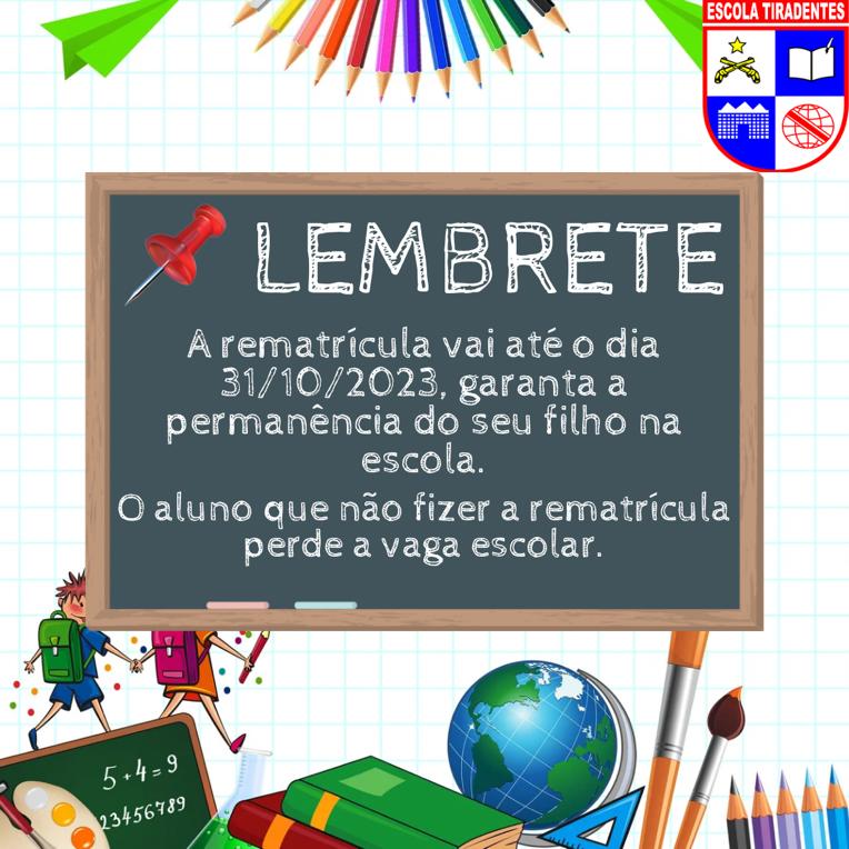 O aluno que não fizer a rematrícula perde a vaga na escola.