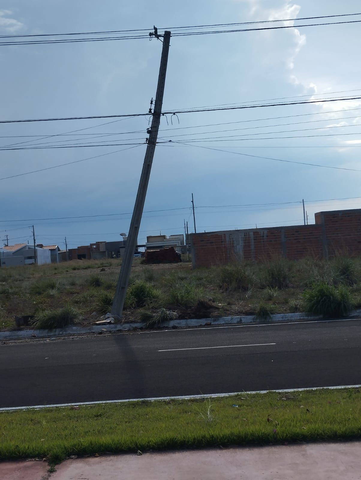 ÁGUA BOA - Um poste que sustenta a rede elétrica e demais fiações ameaça cair. O flagrante é registrado na Av. Planalto, em frente ao novo Fórum, no setor Jardim Planalto. Se o poste cair, poderá deixar toda a localidade sem luz e sem internet. Foto: Internauta