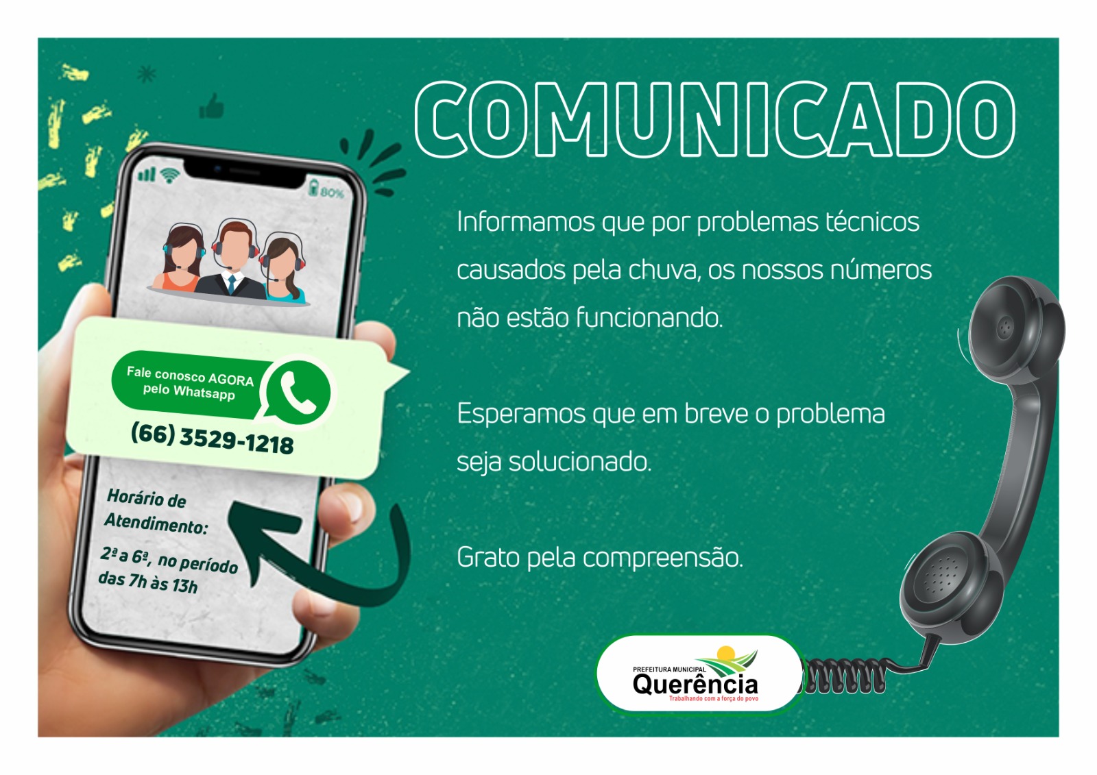 Prefeitura Municipal de Querência comunica que está temporariamente sem telefone fixo