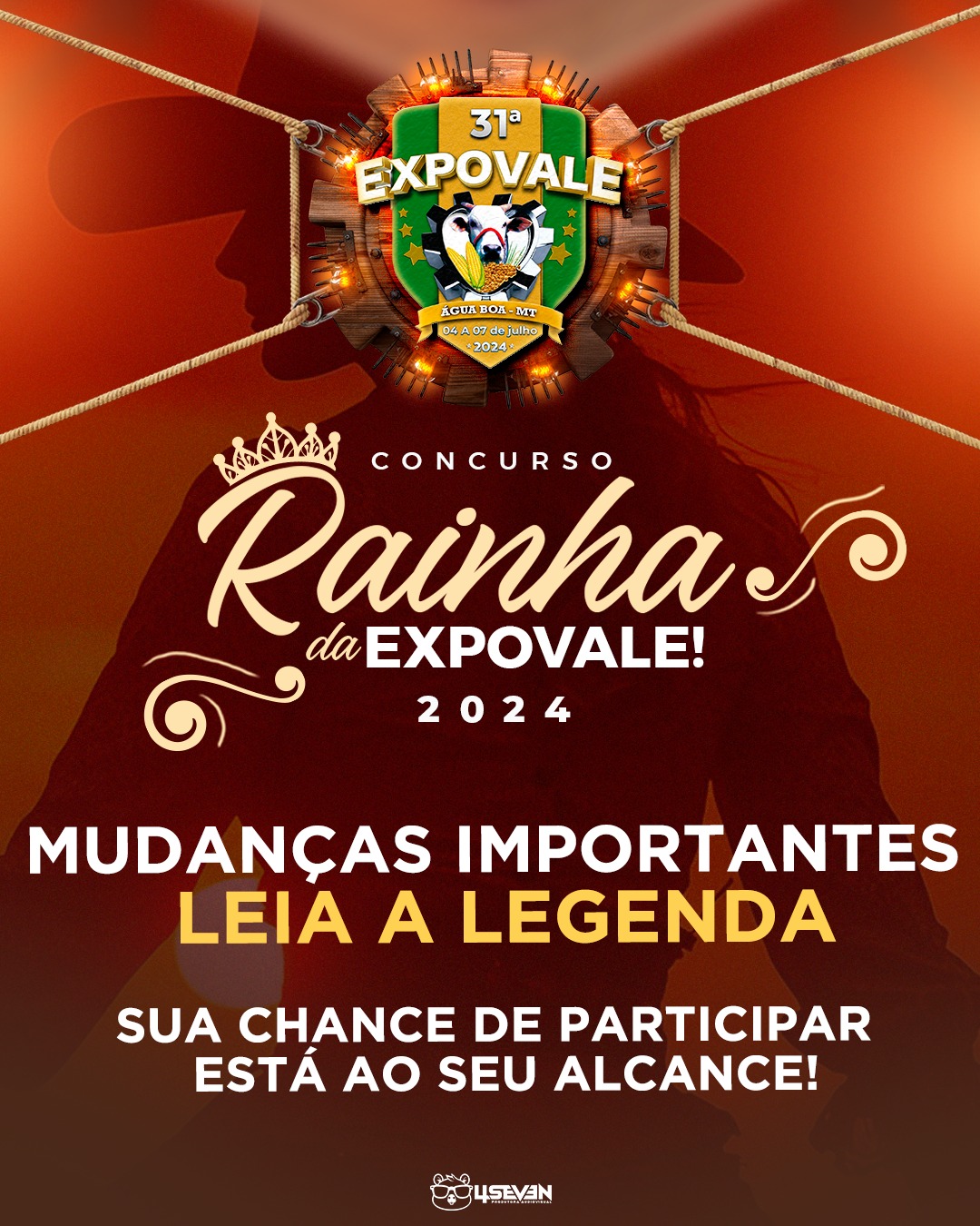 AGUA BOA - Vai acontecer neste sábado, 22 de junho, a escolha da Rainha da 31ª Expovale.
